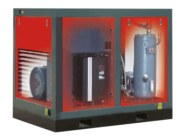 Pt變頻系列空氣壓縮機(jī)是利用變頻器的無級調(diào)速特點(diǎn),通過控制器或變頻器內(nèi)部的PID調(diào)節(jié)器,能平緩啟動螺桿空壓機(jī),改善電機(jī)的啟動和運(yùn)行方式。
